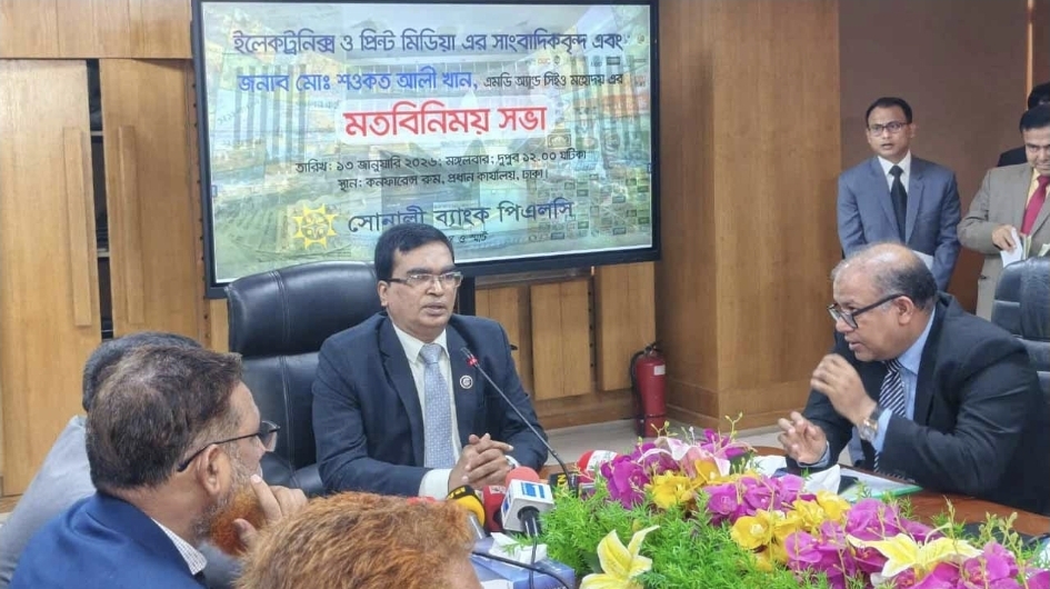 মঙ্গলবার (১৩ জানুয়ারি) রাজধানীর মতিঝিলে সোনালী ব্যাংক প্রধান কার্যালয়ে সাংবাদিকদের সঙ্গে মতবিনিময় সভায় এ তথ্য জানান ব্যাংকটির ব্যবস্থাপনা পরিচালক (এমডি) ও প্রধান নির্বাহী কর্মকর্তা শওকত আলী খান।